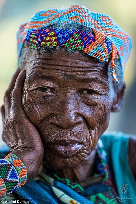 A life lived: A woman from the San Tribe in Northern Territory, Namibia, left, and 1,000-year-old trees with a backdrop of bright orange skies in Dead Flei, also in Namibia